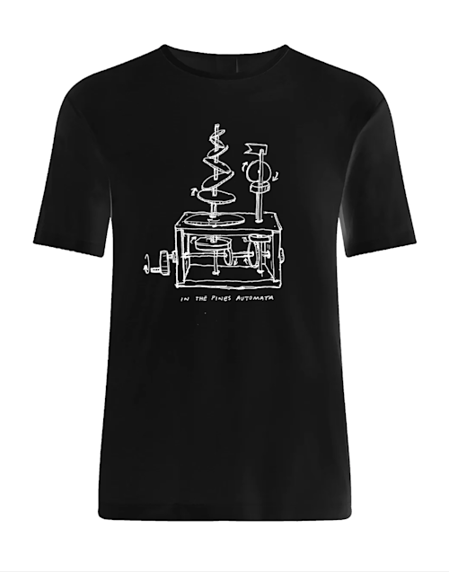 Very limited edition In The Pines 2020 T-Shirt featuring a stencil of the In The Pines automata created by Tee Ken Ng and Cam Campbell.